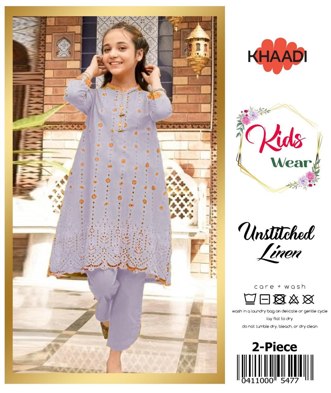 2 Pcs Girl's Linen Embroidered Unstitched Suit